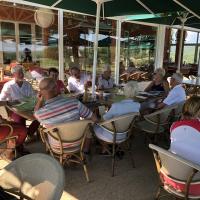 Tout ceci pour dire que, si les 5 golfeuses et les 13 golfeurs qui avaient fait le déplacement furent enthousiasmés par les 10 heures passées sur le parcours, jeudi et vendredi, ils le furent beaucoup moins par les scores signés en bas des cartes. A cela, quatre exceptions, bien sûr: Christophe QUINTON sauta les deux jours d'une plaque de fairway à la suivante avec une aisance de cabri; et lorsque ledit fairway s'élargissait et s'allongeait, son driving puissant à 200+ mètres faisait merveille. Patrick LERMUSIAUX sut, lui aussi, échapper aux multiples chausse-trappes du parcours, se permettant le luxe d'un birdie sur le dangereux par 3 n°12. Myriam QUINTON confirma ses récentes perfs en prenant deux fois la 3ème place du classement en Net, mais dut se contenter de la 4ème place au combiné des deux journées. Cependant, le véritable spécialiste du survol des ravins se révèla être Michel FALCAND, 2ème jeudi avec 35 pts et 1er vendredi avec 37 pts, vainqueur au combiné (36 pts), qui avoua, en fin de séjour, être en général très motivé, et souvent bien placé, par les séjours proposés par Mme CARMOIN.